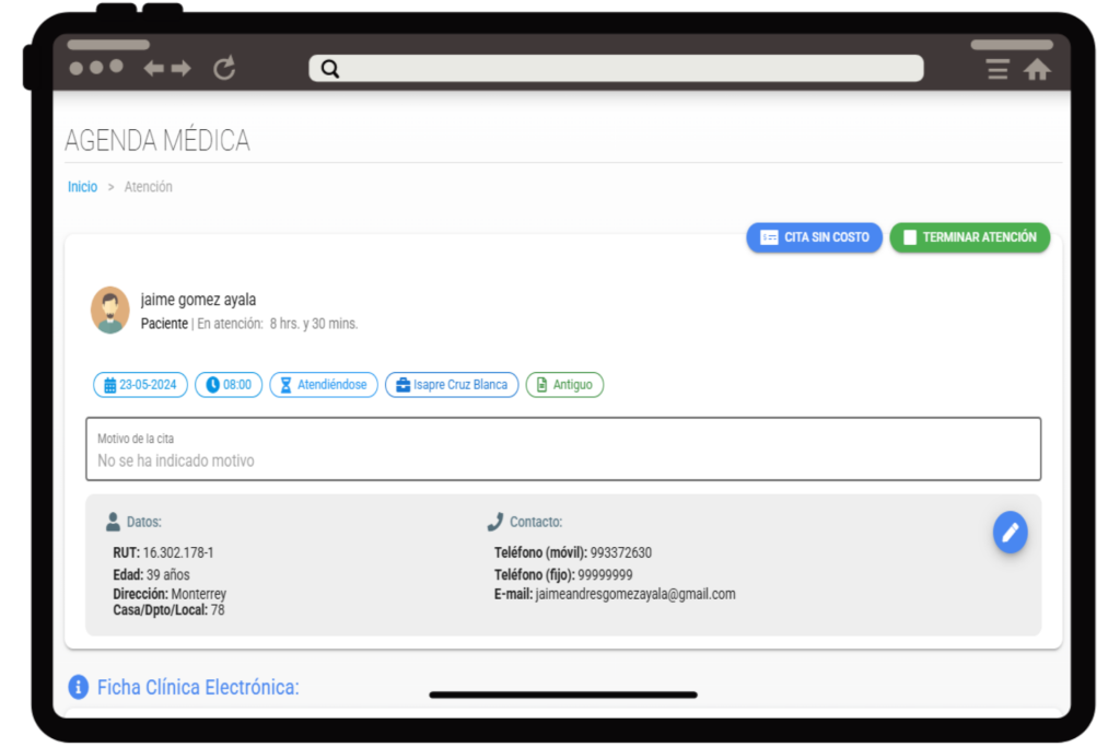 Ideal para consulta personal o centro médico privado con agenda, ficha médica y pagos online con webpay.