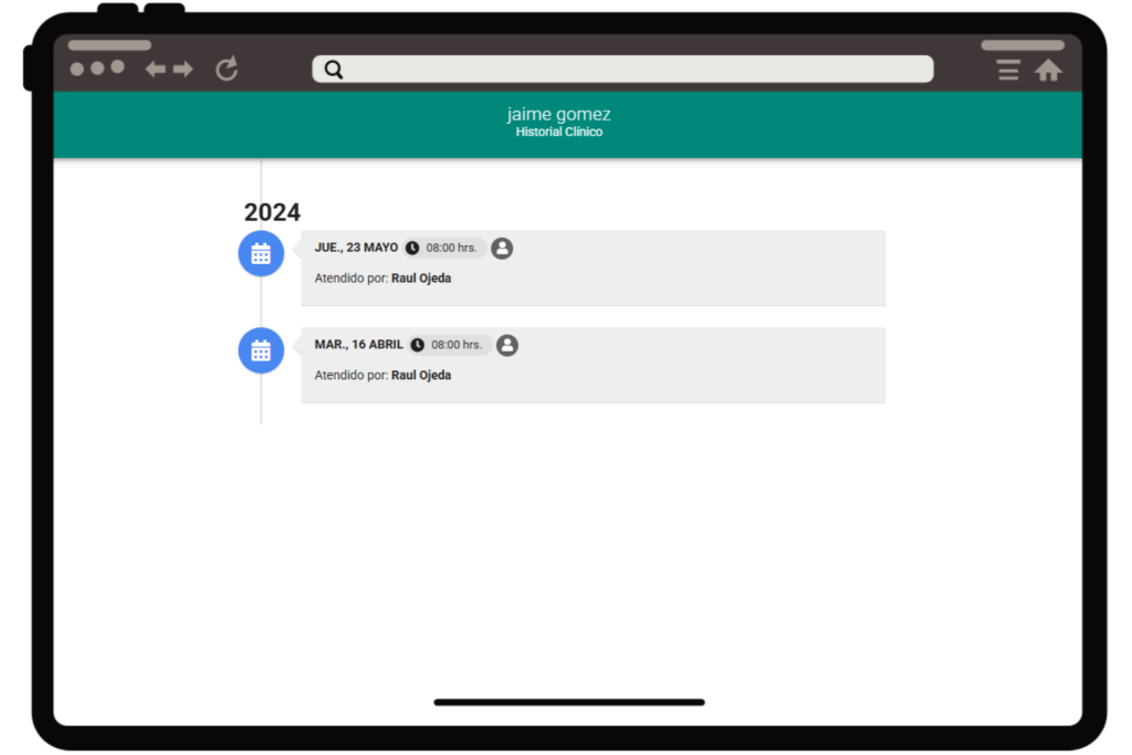 Consulta y registra el historial médico de cada paciente en un solo lugar. Visualiza diagnósticos, tratamientos y evoluciones para dar un mejor seguimiento.